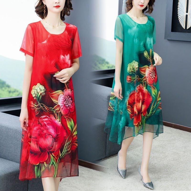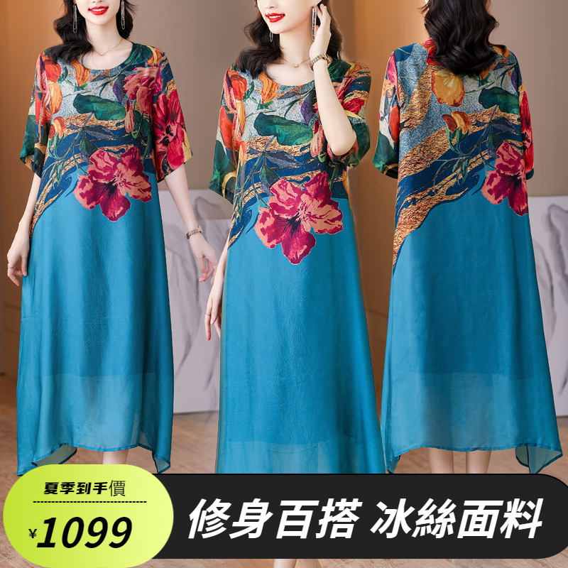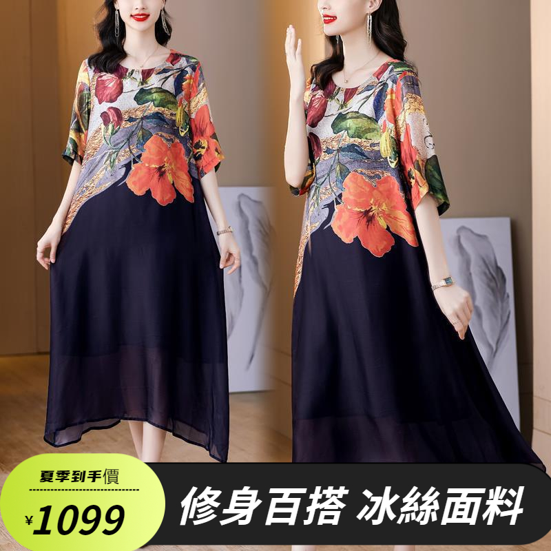 夏季爆款大碼印花氣質長裙,顯瘦顯高顯腿長!