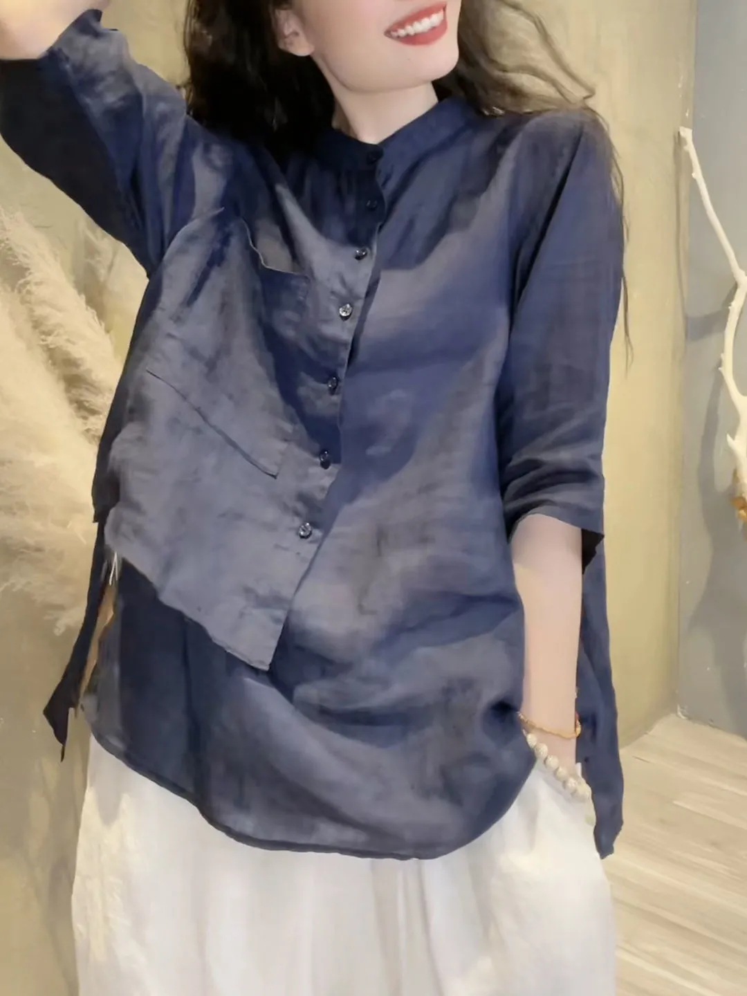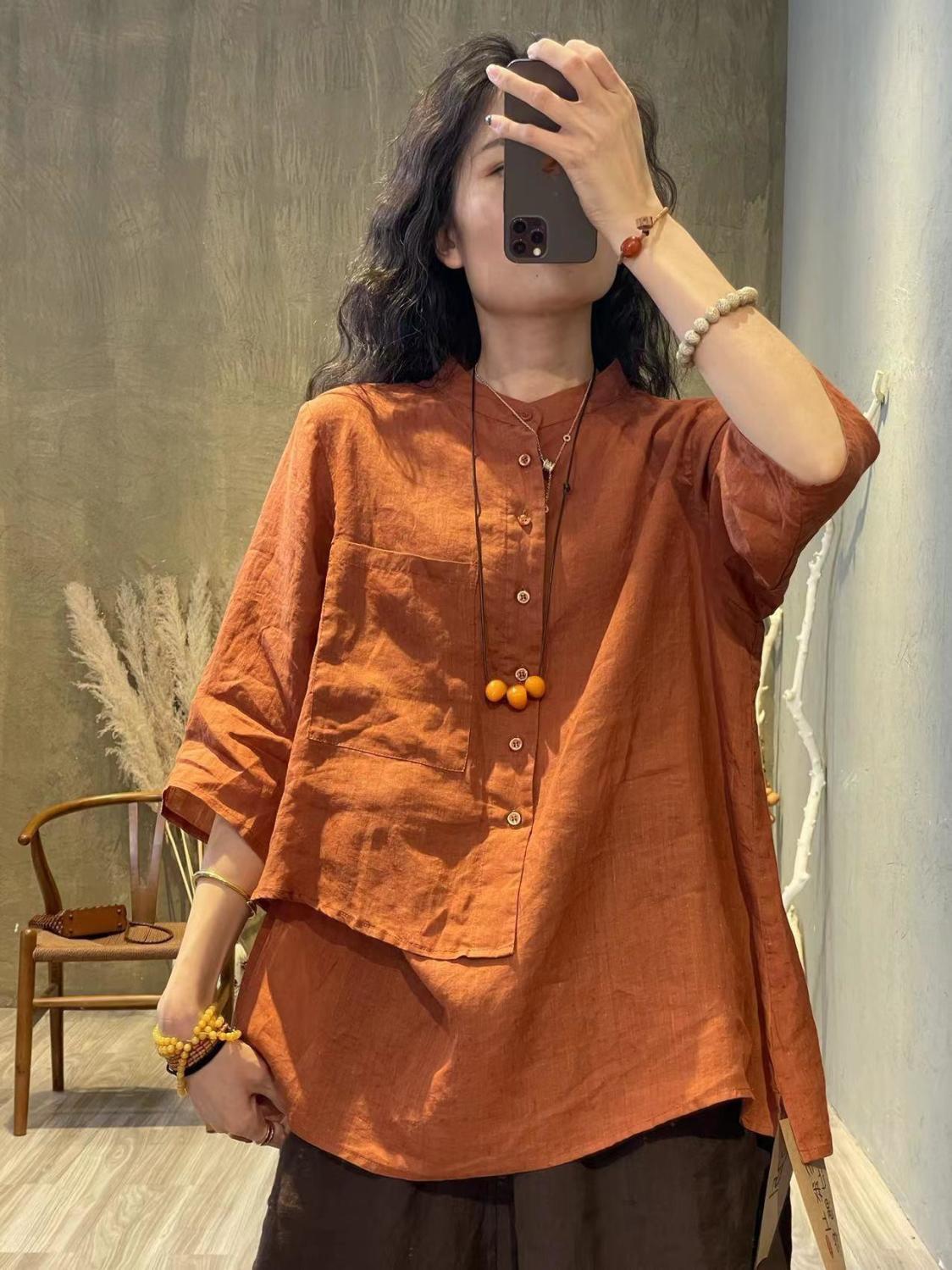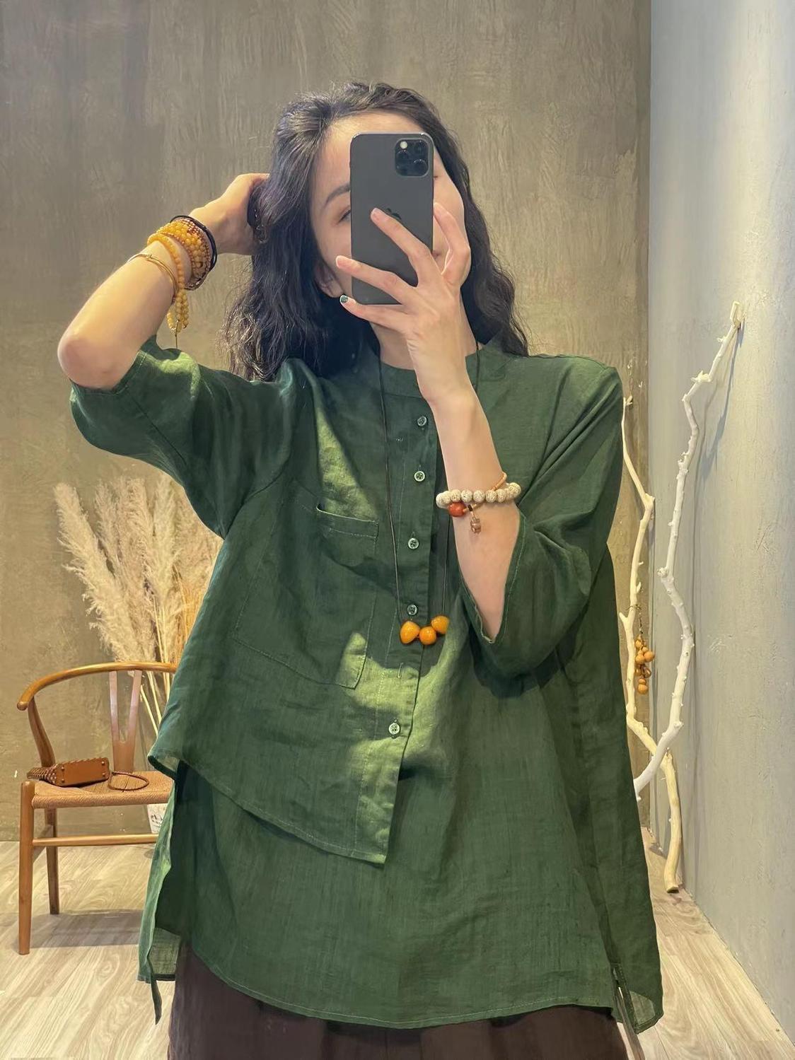 苧麻長袖襯衫