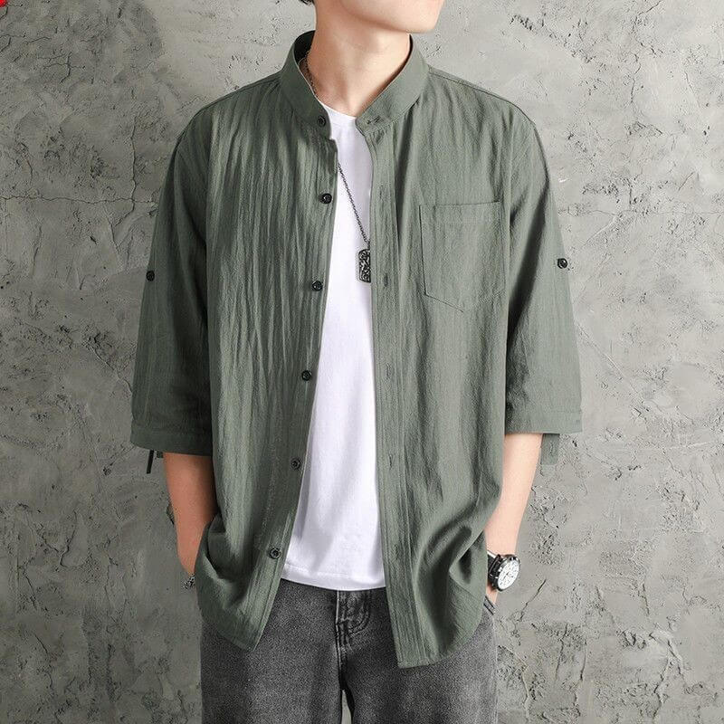 【潮流男士】夏季短袖棉麻襯衫,純色休閒寬鬆舒適,吸汗透氣,帥氣有型百搭!