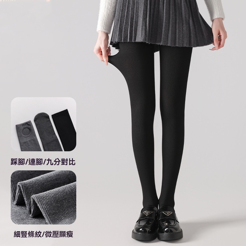 【保暖瘦腿連褲襪】雲朵棉連褲襪 秋冬外穿 黑色顯瘦 格雷系灰色加絨加厚打底褲襪