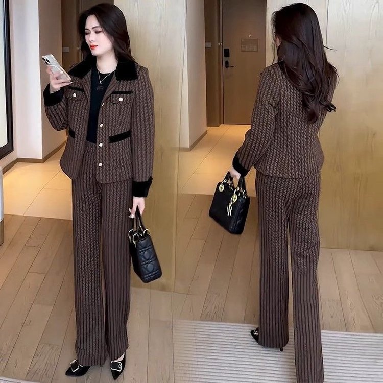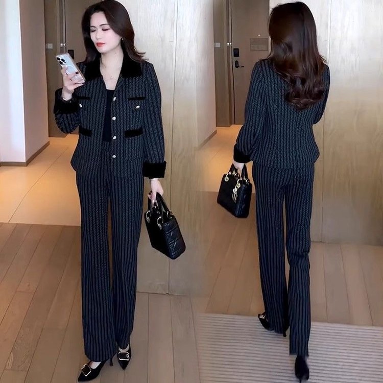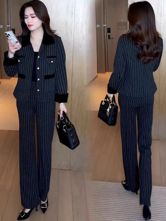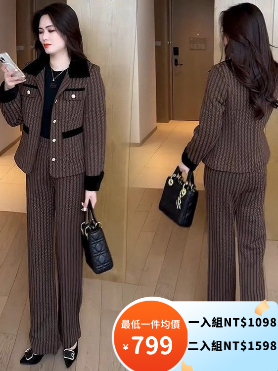 經典小香風套裝 條紋元素點綴高級感 闊腿褲版型利落 輕鬆穿出精緻氣質