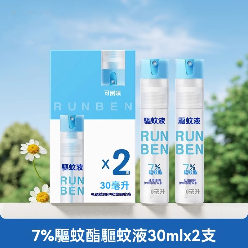 潤本7%驅蚊酯驅蚊液30ml*2(無酒精無香型)便攜倒噴瓶