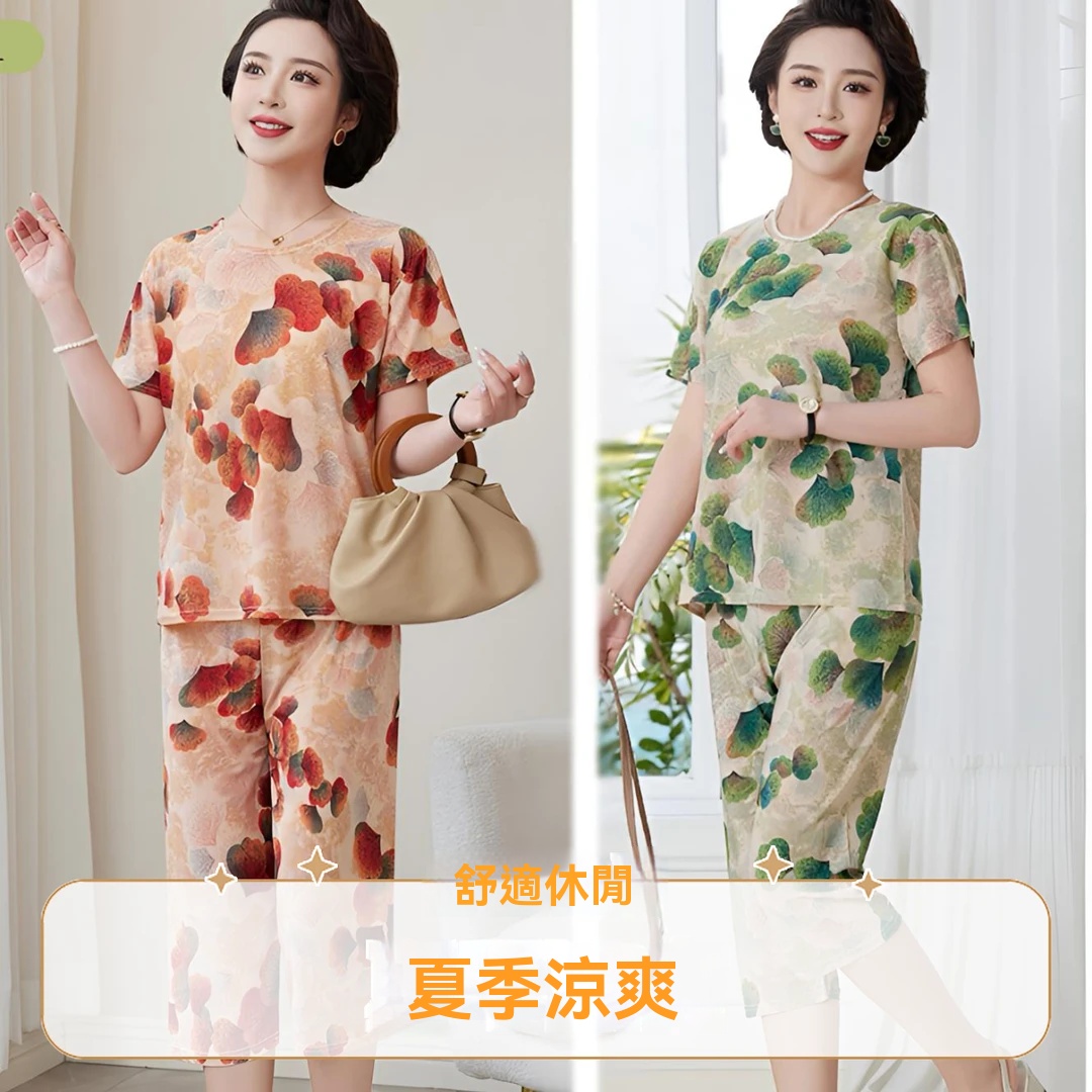 【熱銷爆款】夏季冰絲媽媽套裝 版型時尚舒適透氣