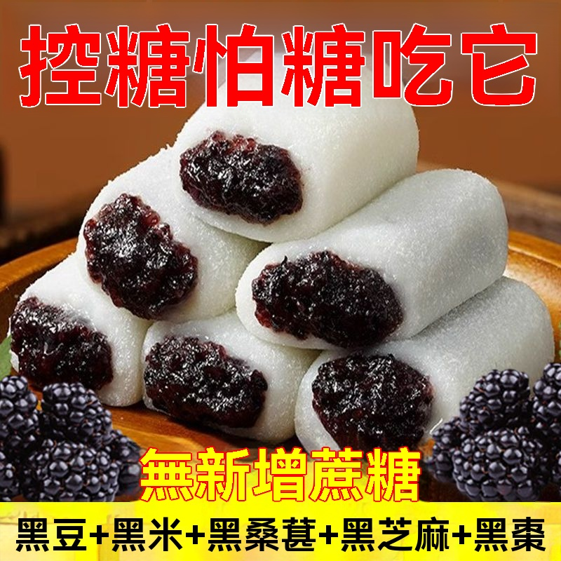 【整箱80枚】五黑桑葚冰皮糕傳統代餐飽腹健康無蔗糖零食糯米糍粑