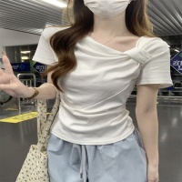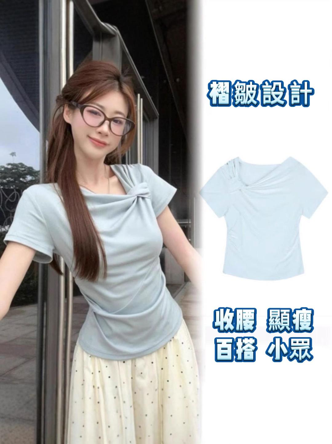 夏季新款 小眾設計 不規則褶皺 別緻收腰百搭 扭結短袖