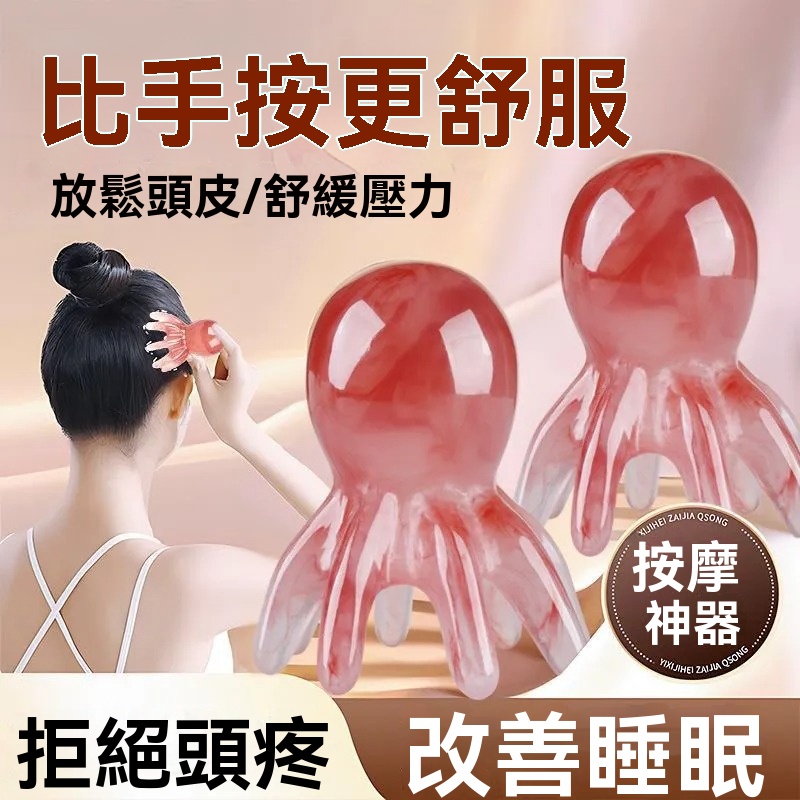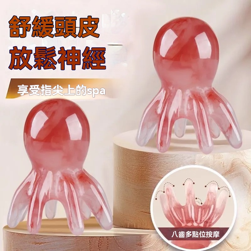 八爪魚按摩梳 按摩放鬆促循環 精準喚醒頭皮層 頭部近50穴位都能按 給頭部做專屬SPA